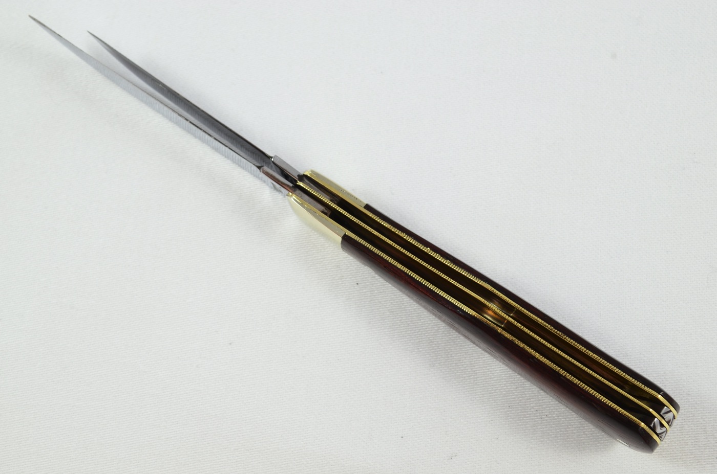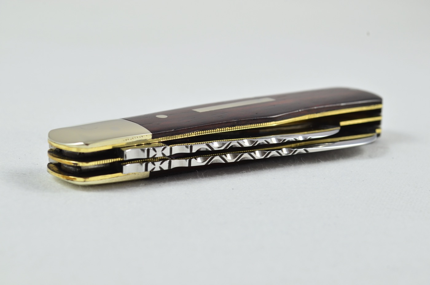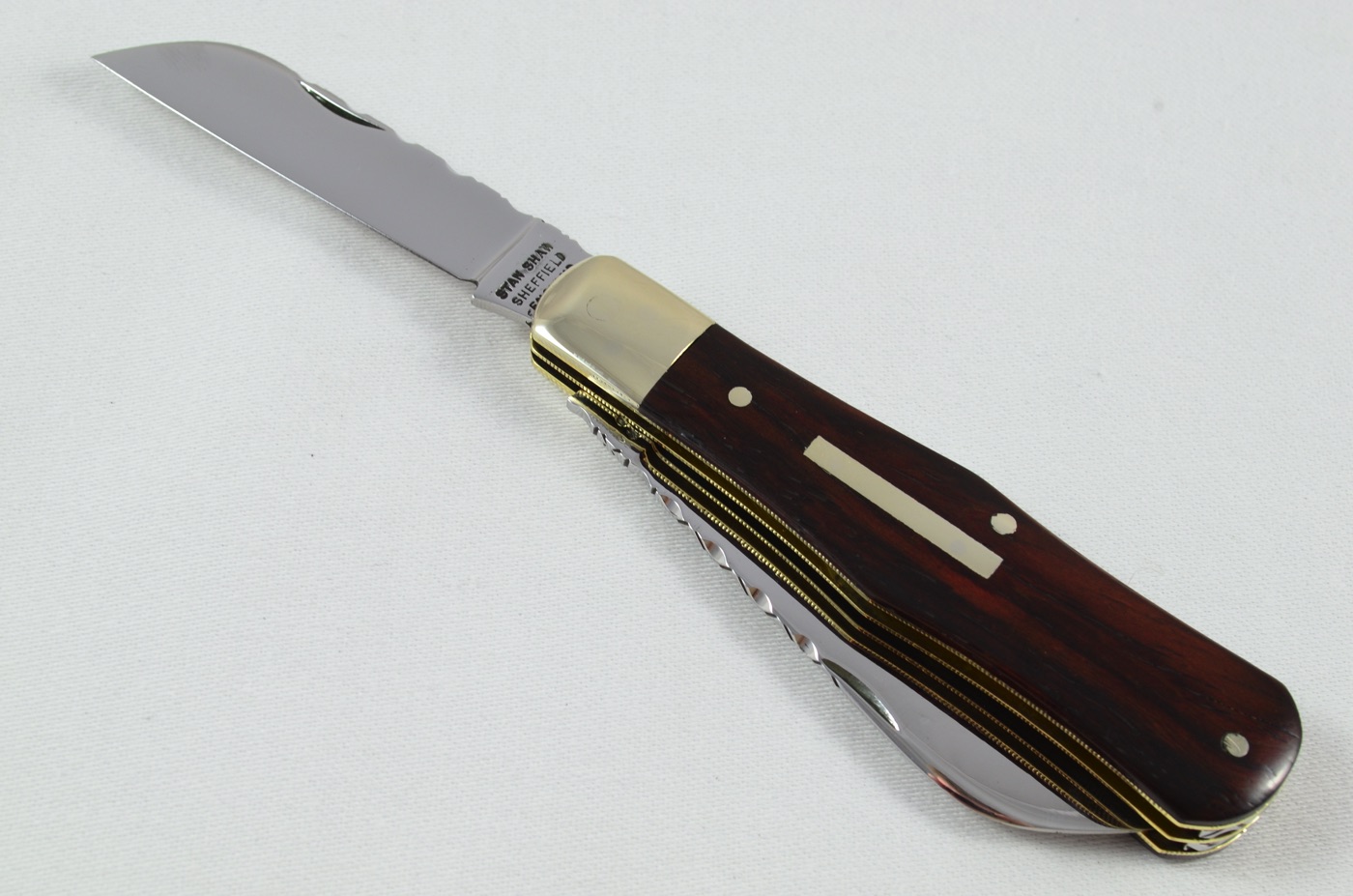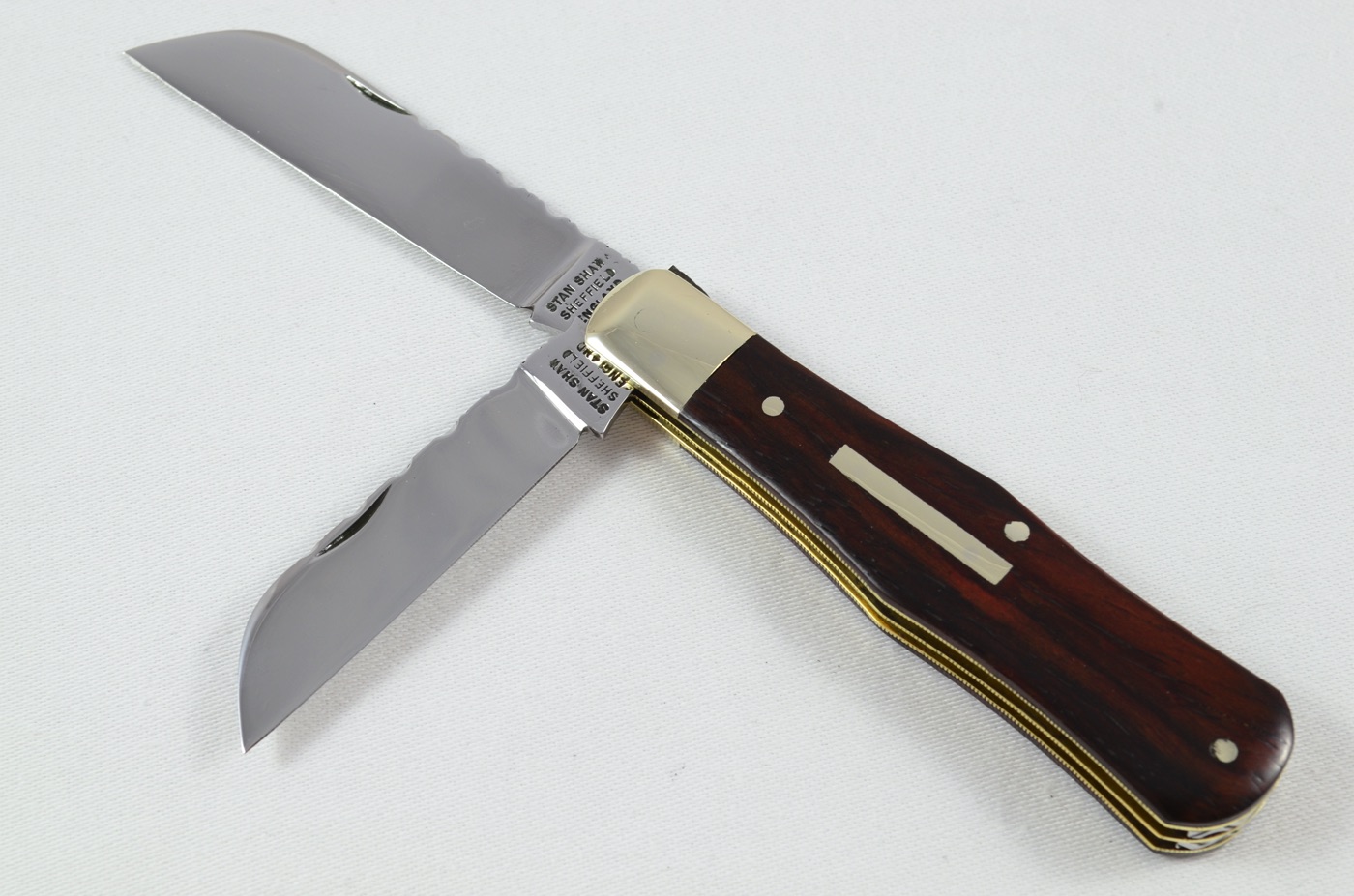 As shown clearly in the images, both backsprings are adorned with crisp, well-aligned workback, an area of craftsmanship in which Stan Shaw particularly excelled. The blade action is superb, with strong, confident snap throughout, and the overall finish and attention to detail are of an exceptionally high standard, reflecting the level of care for which Shaw’s work is renowned.