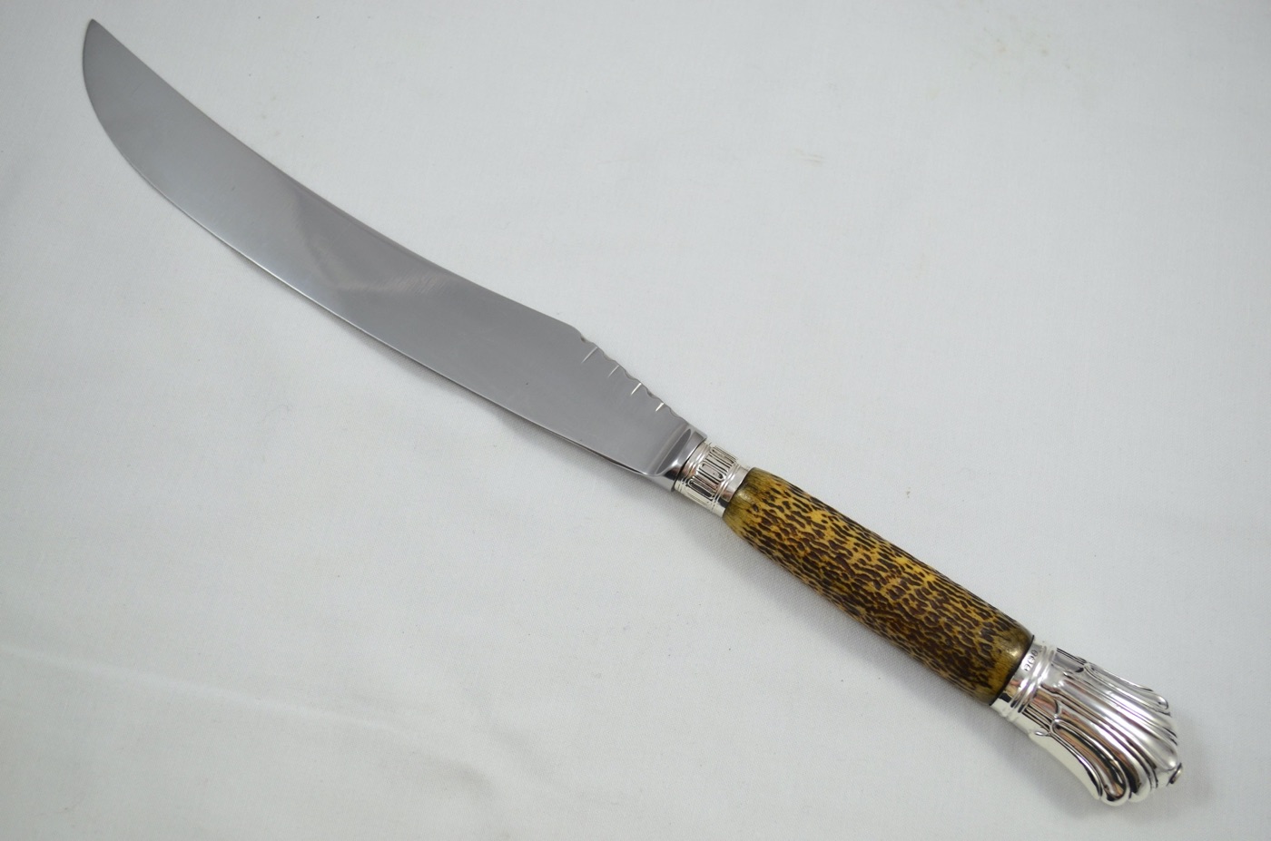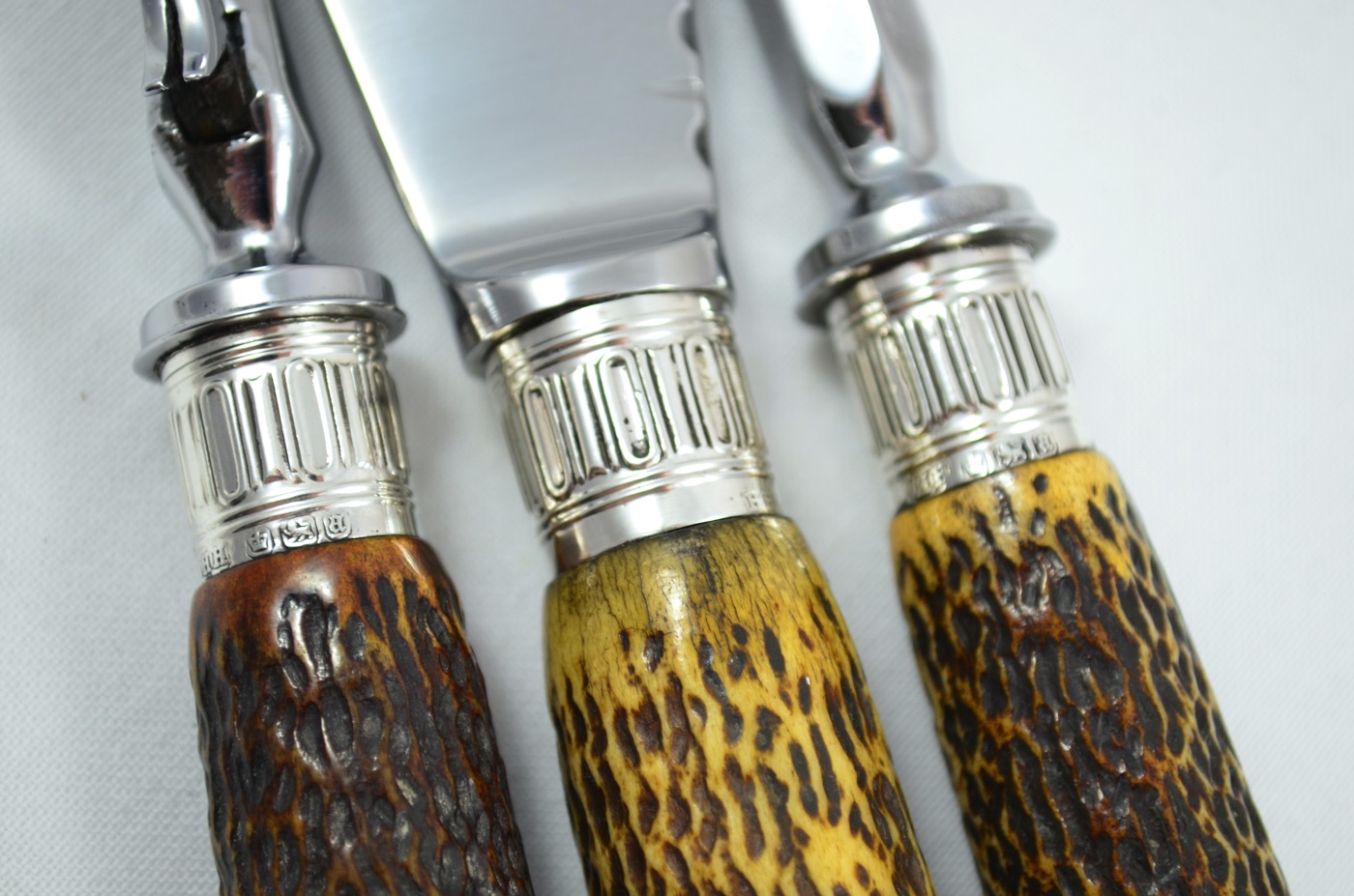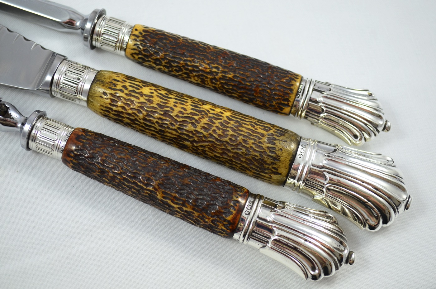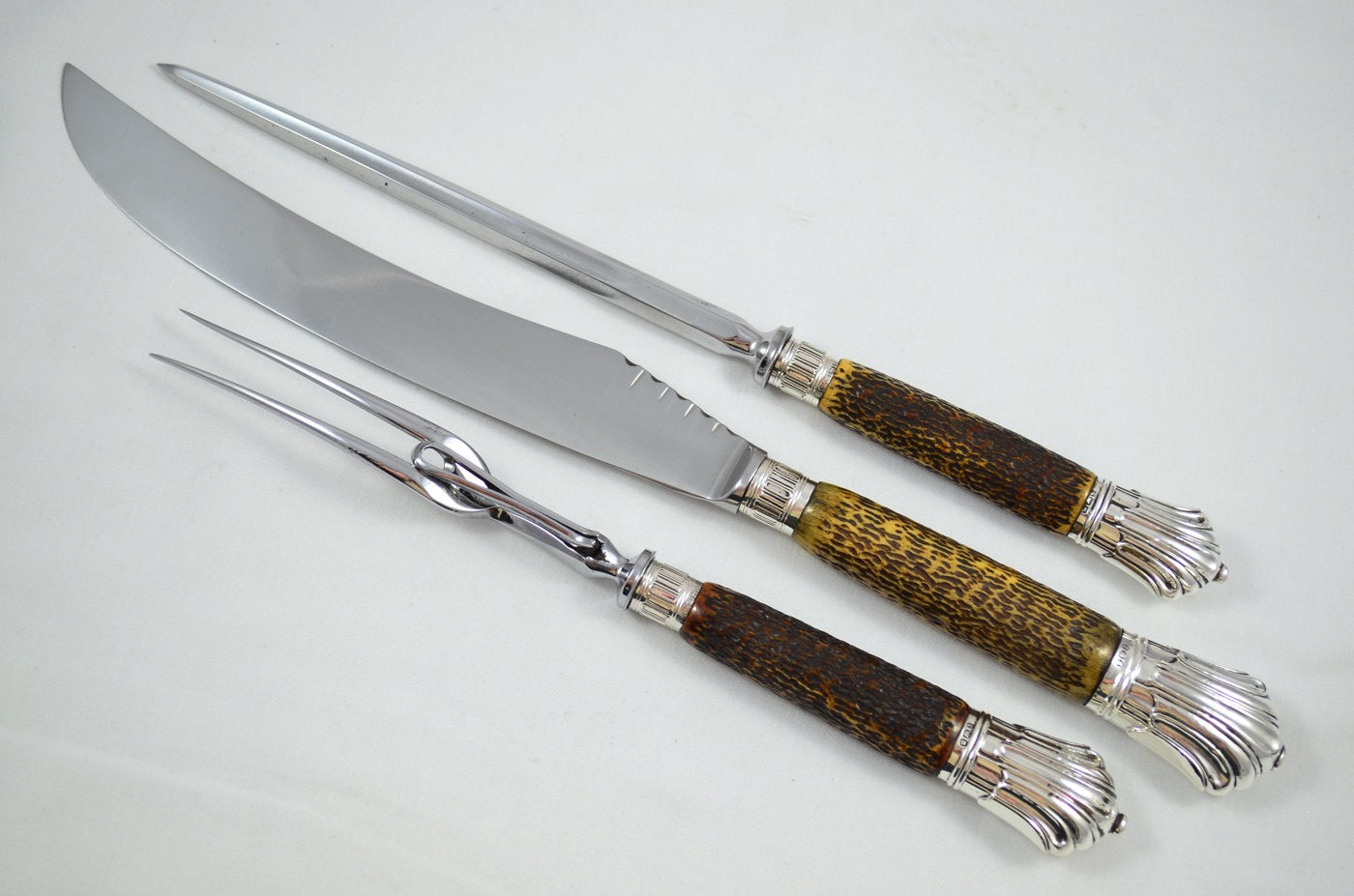 On offer today is a superb 3 Piece Carving Set featuring Solid Silver ‘Albany’ Pattern/Style Caps and Ferrules along with Sambar Stag Handles. Each piece has been beautifully restored by our Master Craftsmen here at The Sheffield Cutlery Shop.