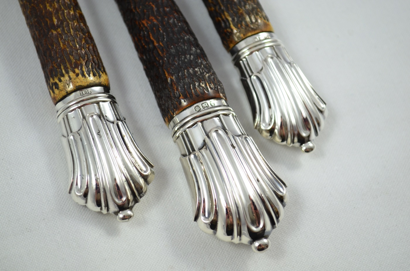 The Caps and Ferrules are fully hallmarked with the Lion Passant, Crown and date letter B for 1894. The Blades are also marked with the Makers Mark H.H for Henry Howson (who used to be located on Carver Street in Sheffield!).